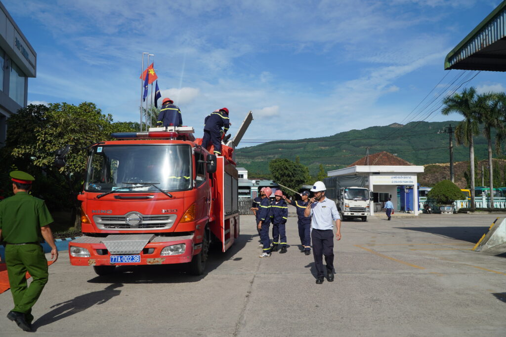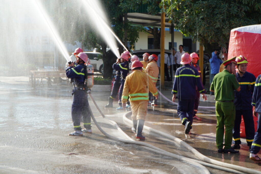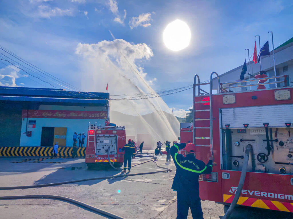 On the afternoon of October 3, the Firefighting and Rescue Team of Area 2 (Firefighting and Rescue Police Department, Gia Lai Provincial Police) coordinated with Dai Thanh Wood Technology Joint Stock Company (Quy Nhon Tay Ward) to organize a firefighting and rescue drill.